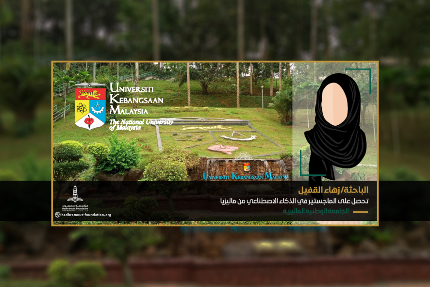 وتبعث مؤسسة حضرموت برقية تهنئة إلى عضو هيئة التدريس لدى جامعة سيئون الباحثة زهاء مبارك القفيل لحصولها على درجة الماجستير من جامعة UKM بمملكة ماليزيا .