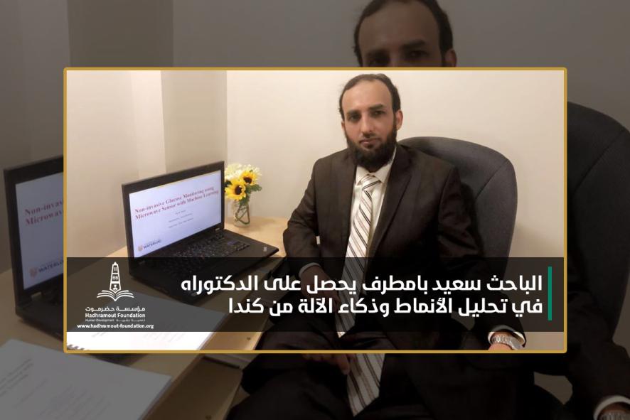 حصل الباحث سعيد محمد سعيد بامطرف على درجة الدكتوراه في تحليل الأنماط وذكاء الآلة من جامعة واترلوا بكندا .