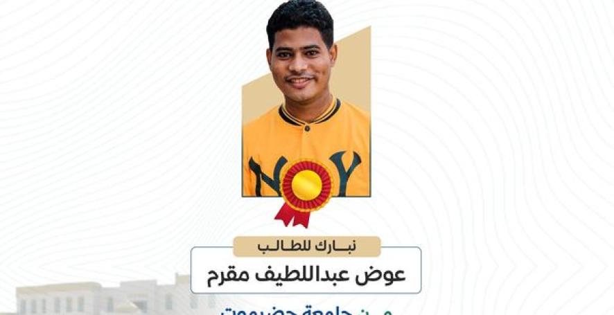 Hadhramout Foundation congratulates the outstanding student from Hadhramout University, Awad Abdulatif Magram, who specializes in Human Medicine.